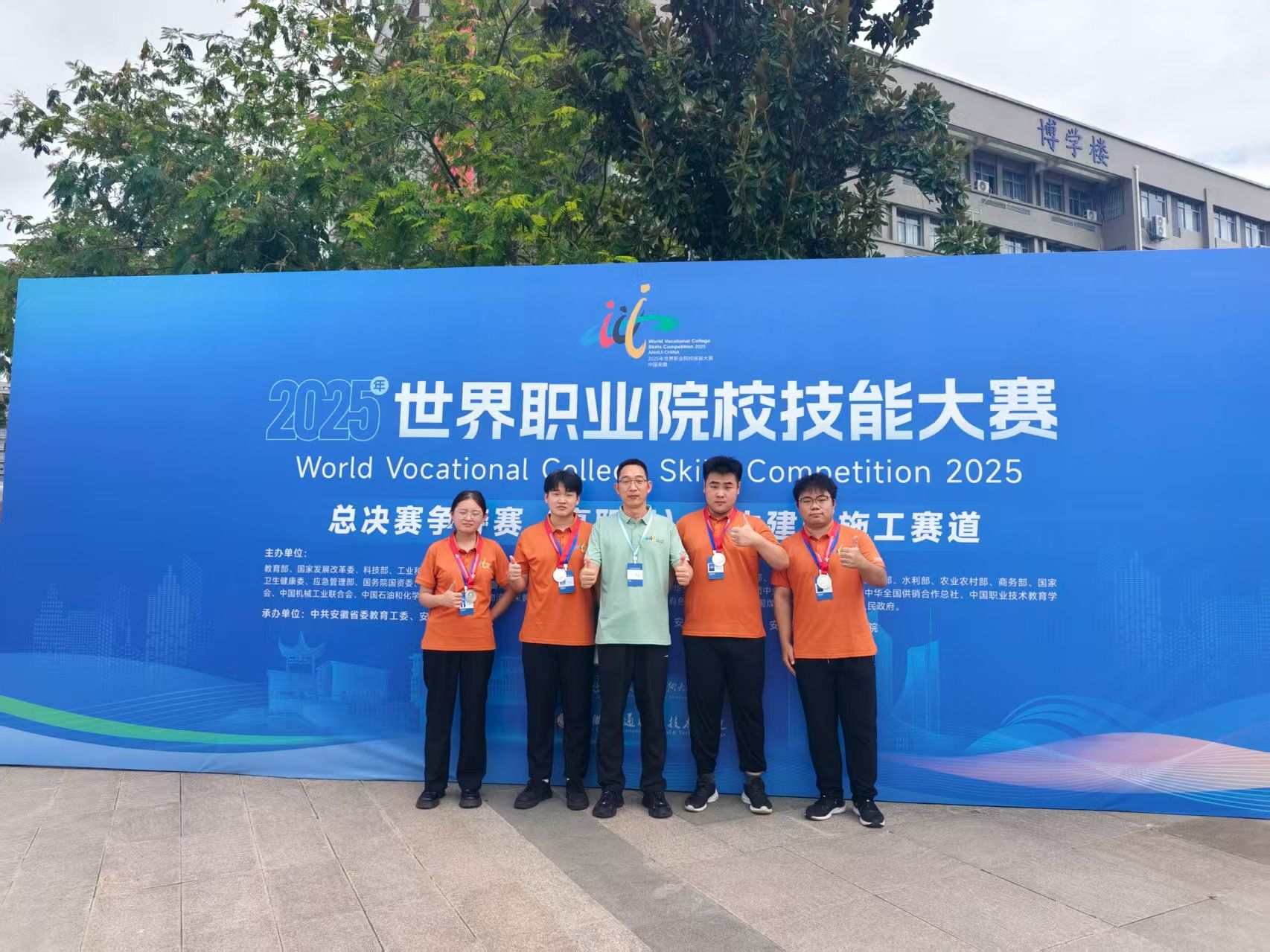 8月27至31日,2025年世界职业院校技能大赛总决赛争夺赛——土木建筑施工赛道(高职组)在安徽职业技术大学举行。来自全国28个省(自治区、直辖市)的156支代表队、近800名选手参加竞赛,经过激烈角逐,由道桥工程学院袁其华、郭梅为指导教师,建筑24301班王博、崔政、孙义博、代雨欣组成的参赛队伍在比赛中发挥出色,展现出了扎实的专业基础和较高的综合素养,成功斩获银奖。