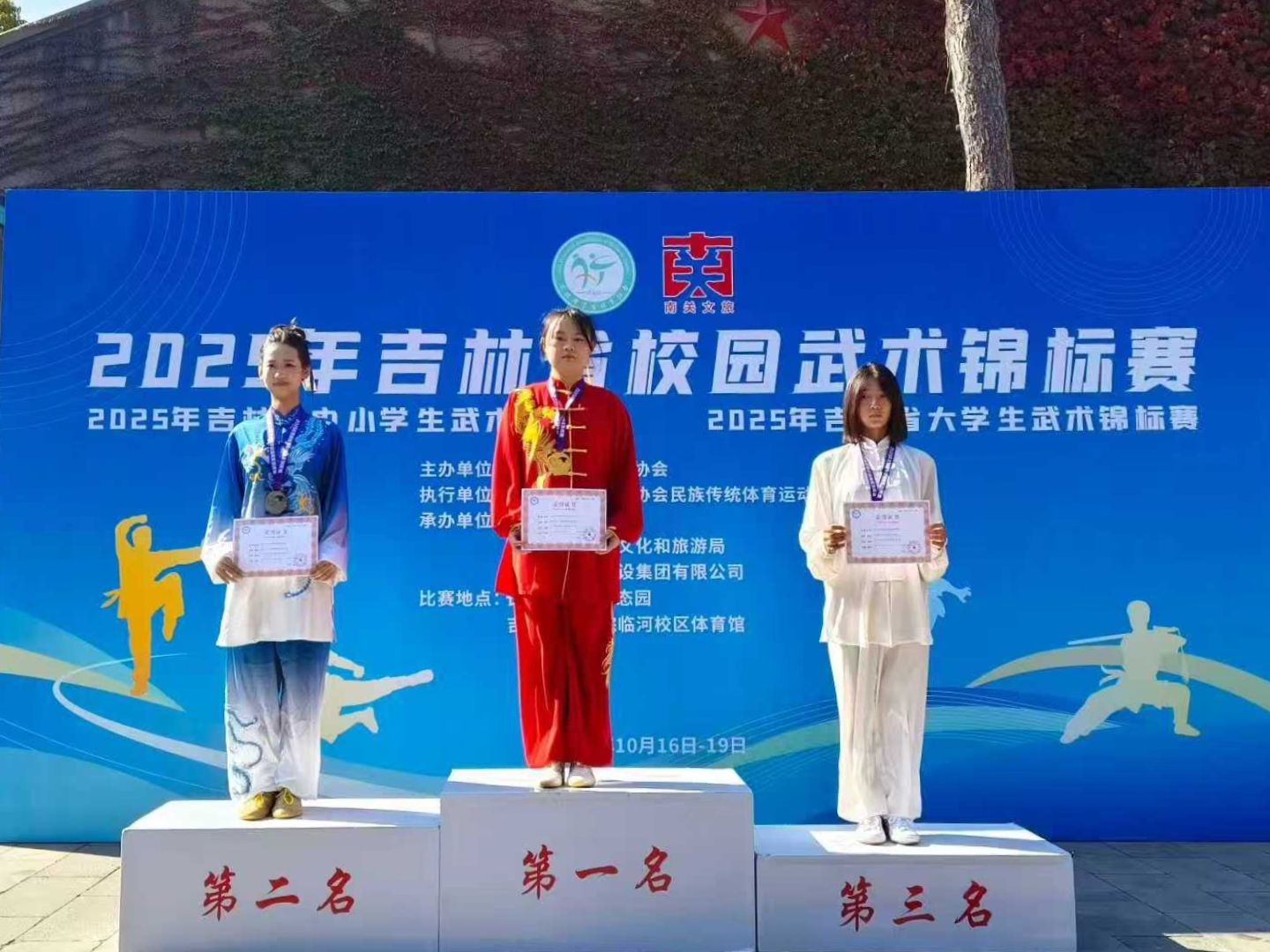10月16日-17日,2025年吉林省大学生武术锦标赛在长春水文化生态园与吉林体育学院举行。本届大学生锦标赛汇聚了来自全省35所高校的精英,共计298名师生运动员同台竞技。我校武术队凌端彤宸同学发挥出色,勇夺大学丙组太极拳类冠军,并在太极器械类项目中获得第五名。