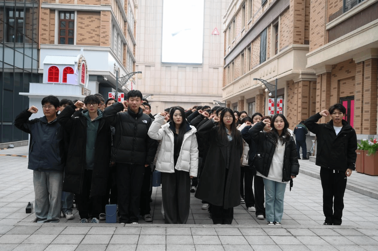 活动最后,全体参与者庄严肃立,举起右拳,进行了青春誓言宣誓。铿锵有力的誓言回荡在展馆上空,既是对革命先辈的致敬,也是青年学子牢记使命、勇担重任的坚定表态。此次活动,通过“线上+线下”“场馆+思政”“理论+实践”的创新形式,让思政教育走出校园、走进场馆。